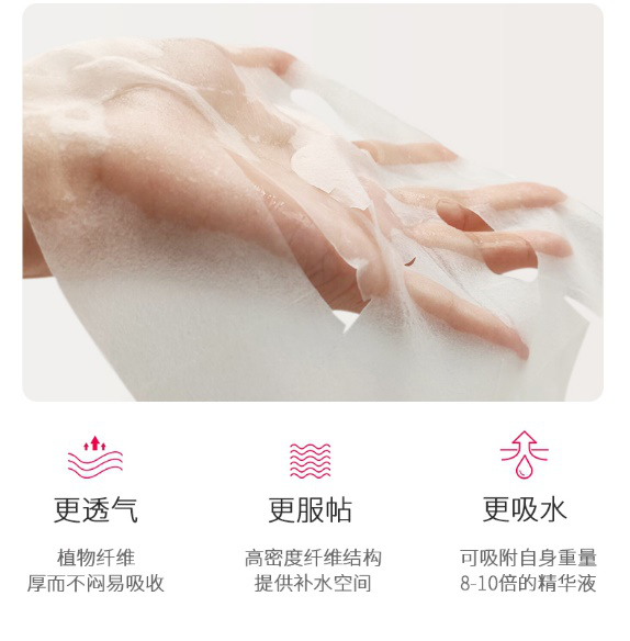 不僅如此,更嚴選植物纖維膜布,有著比市面上面膜更扎實的膜布,能促進